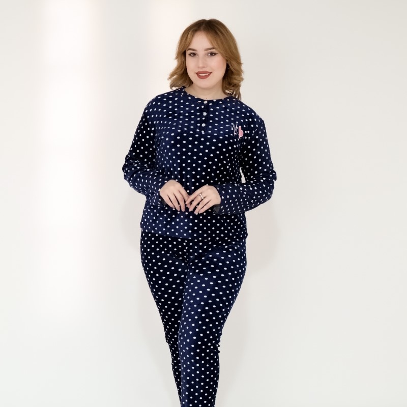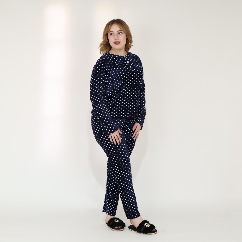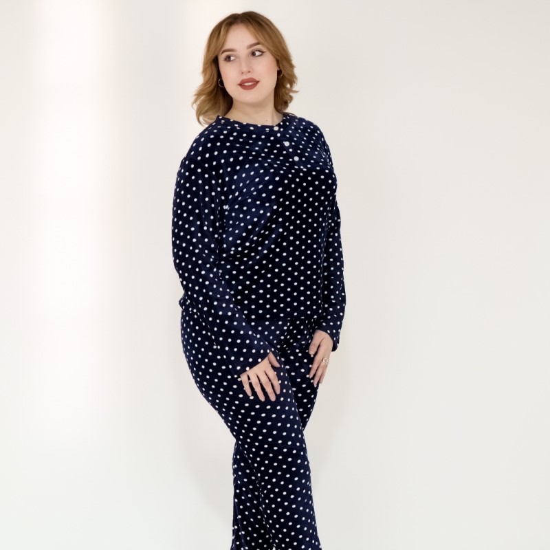 Pyjama bleu en polaire orné de petits aspirine blancs . Doux, chaud et élégant, il offre un confort absolu pour des nuits paisibles et stylées.