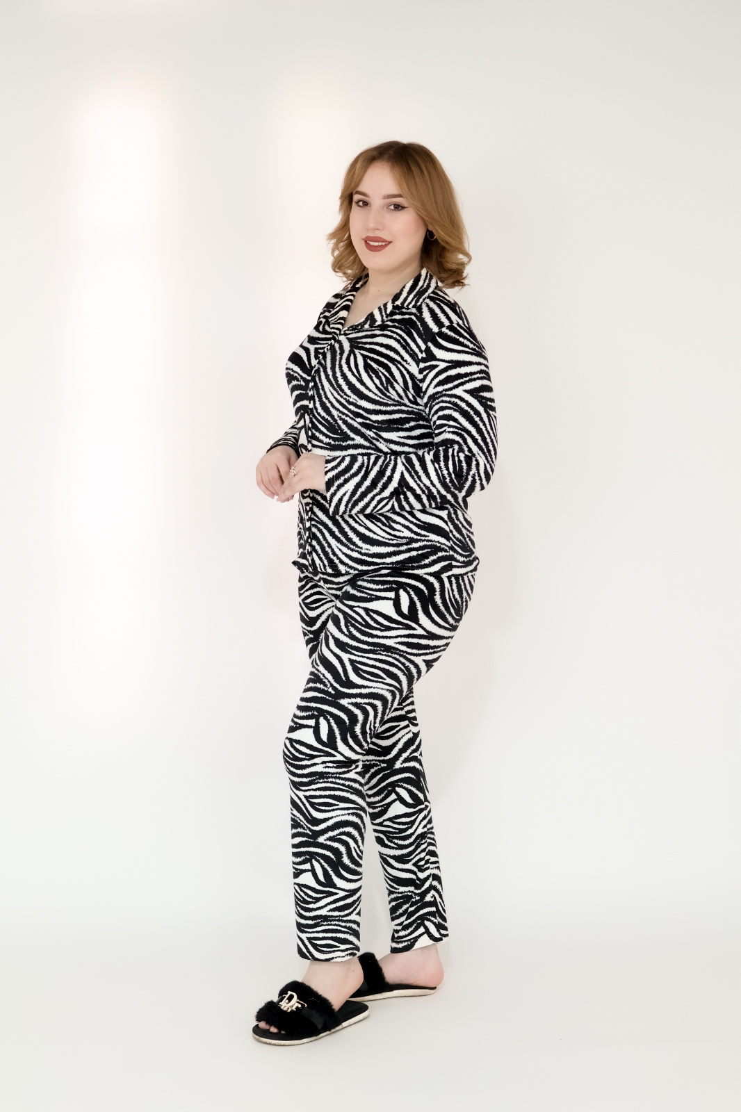 Pyjama en polaire rose orné de petits cœurs blancs et d’un motif “Panda” sur la poitrine. Doux, chaud et élégant, il offre un confort absolu pour des nuits paisibles et stylées.